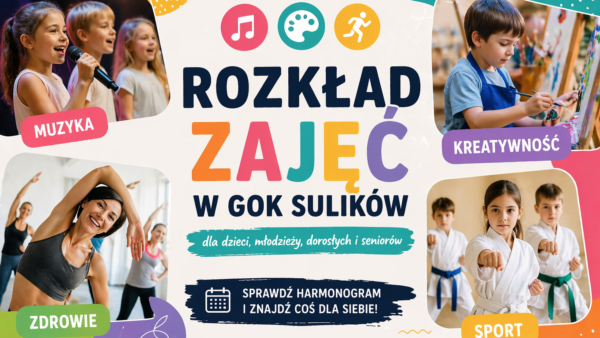 Zapraszamy do zapoznania się z harmonogramem zajęć w Gminnym Ośrodku Kultury w Sulikowie.