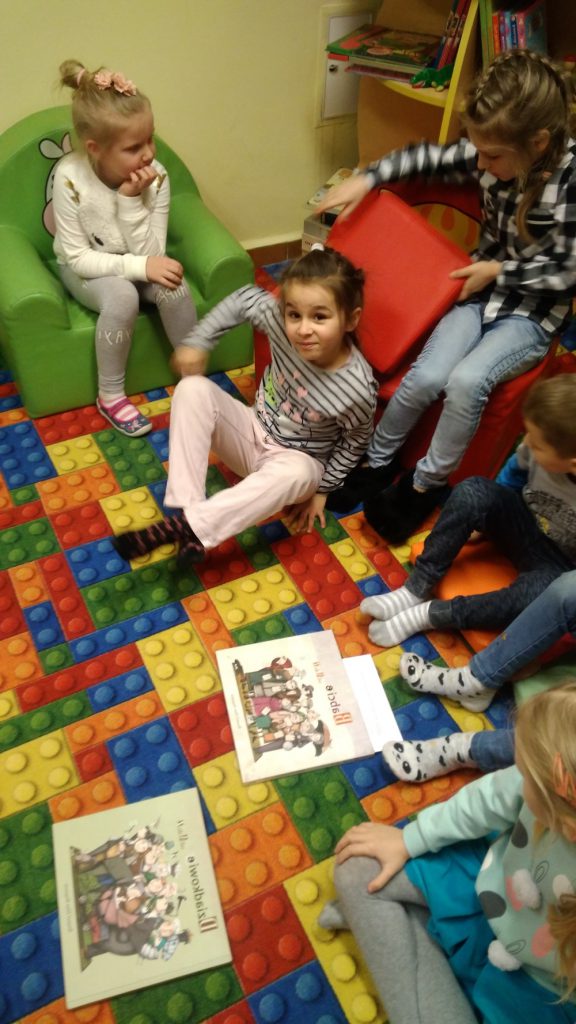 Spotkaniu jak zawsze, towarzyszyła dyskusja. Tym razem na temat „Co można robić z babcią i dziadkiem”- na podstawie doświadczeń własnych oraz „ Kiedy Babcia była mała”.