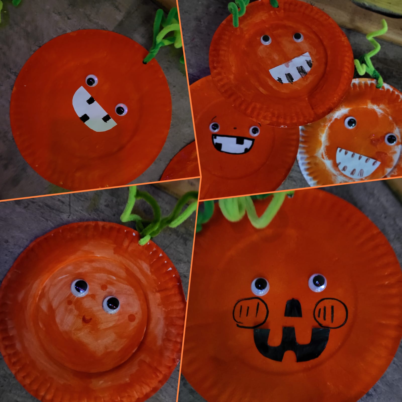 Cieszymy się, że tak licznie do nas dołączyliście – było nas już ponad 20 osób! 🧡 Na początku poznaliśmy ciekawe fakty o dyni, a następnie rozpoczęliśmy pierwszy etap tworzenia własnych dyń z talerzyków.