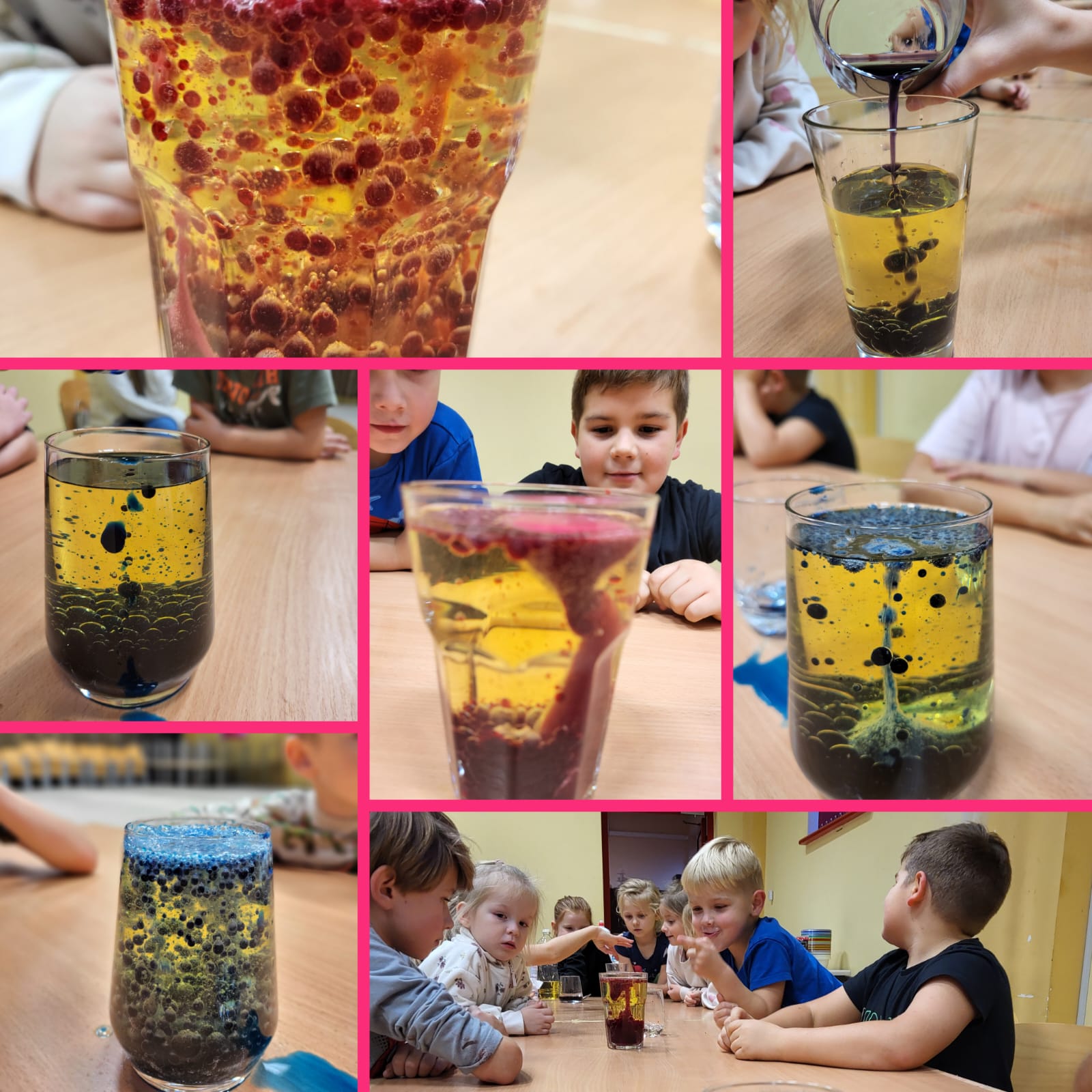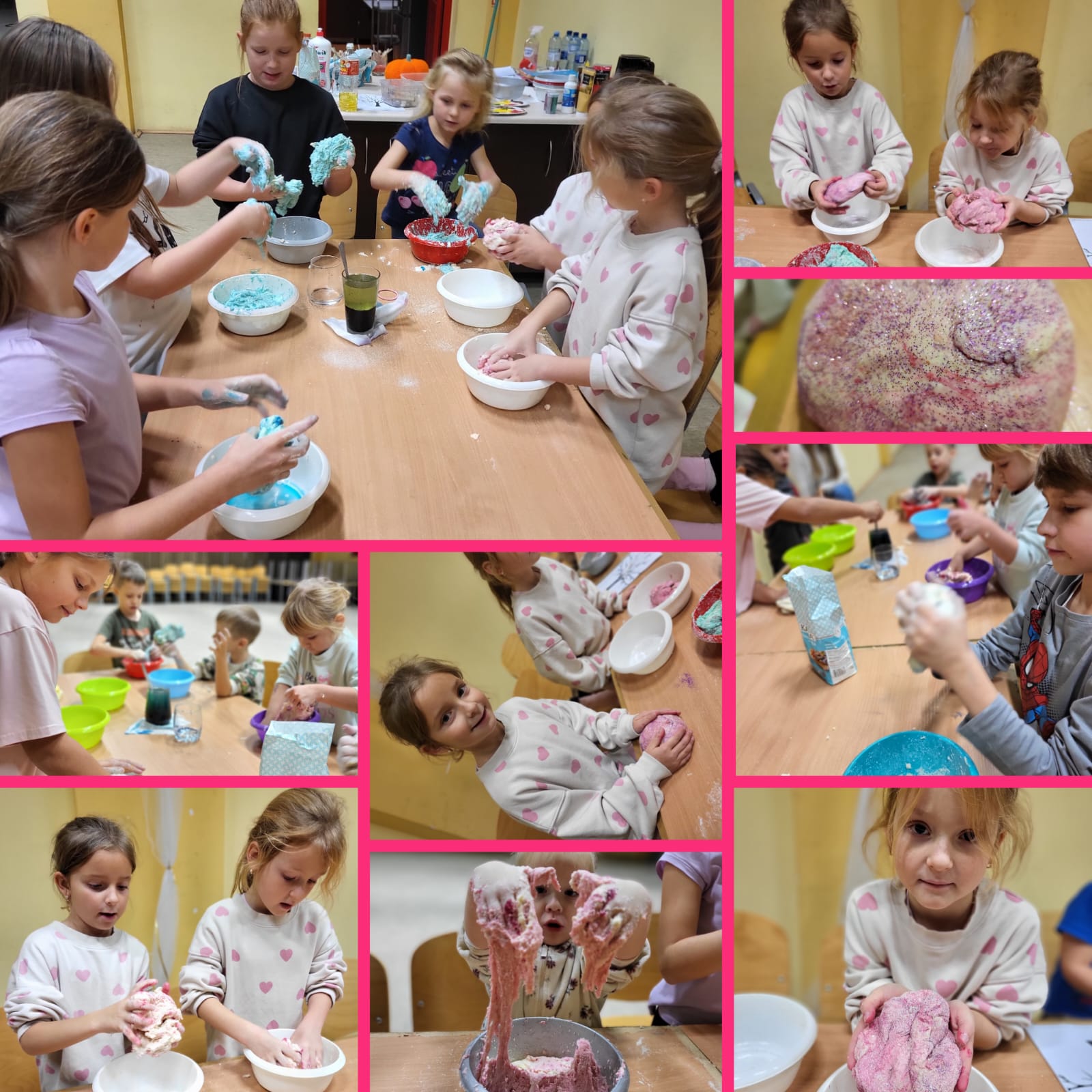 Nie zabrakło też małego eksperymentu z olejem, zabaw z balonami 🎈 i tego, co dzieci lubią najbardziej – masy plastycznej kaszoliny!